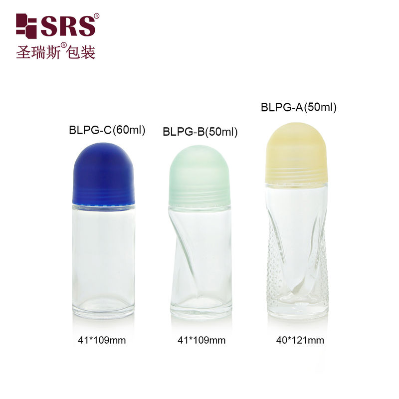BLPG 50ml 60ml ユニークな形状 空のガラスロールオンボトル ボディデオドラントジェル 止汗剤 パッケージ用